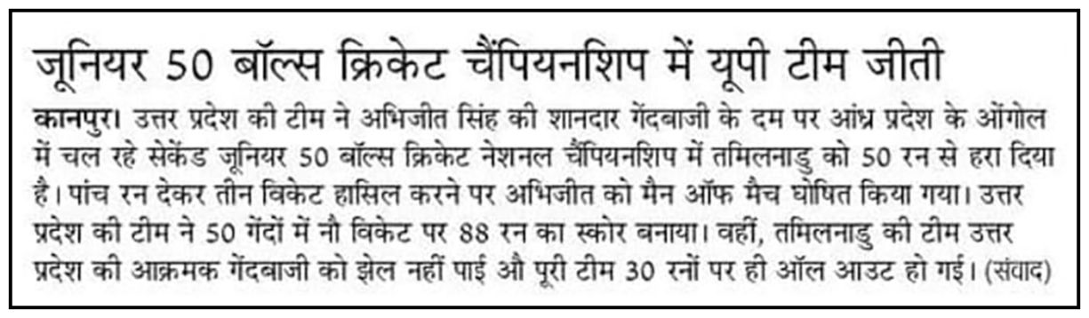 From: 50-Balls Cricket Association of Punjab.