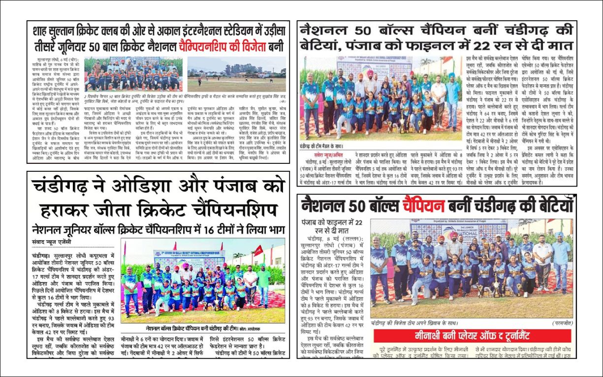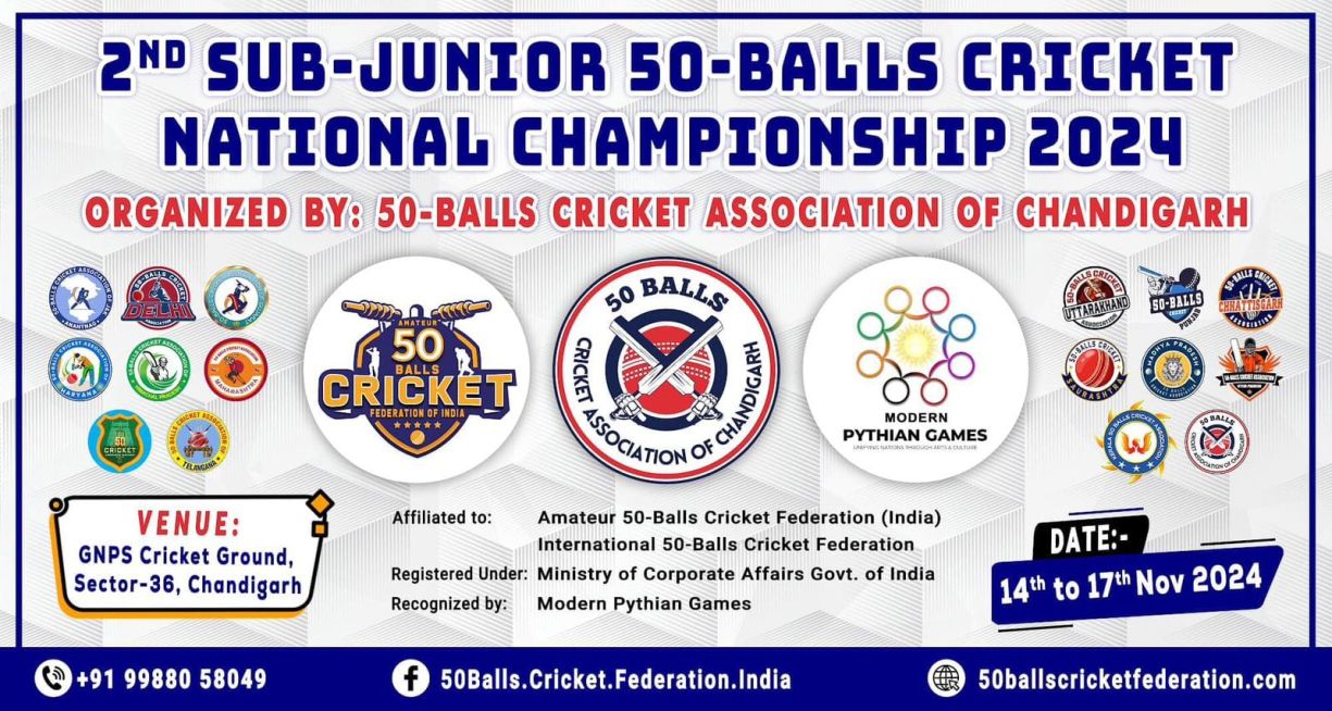 9th National 50-Balls Cricket U-19 Championship and Federation Cup – 2022. Organized by 50-Balls Cricket Association Punjab. Venue SAS Nagar (Mohali), Punjab. Dates: 27th April to 29th April 2022.