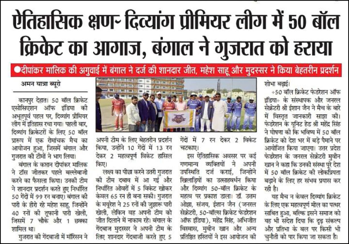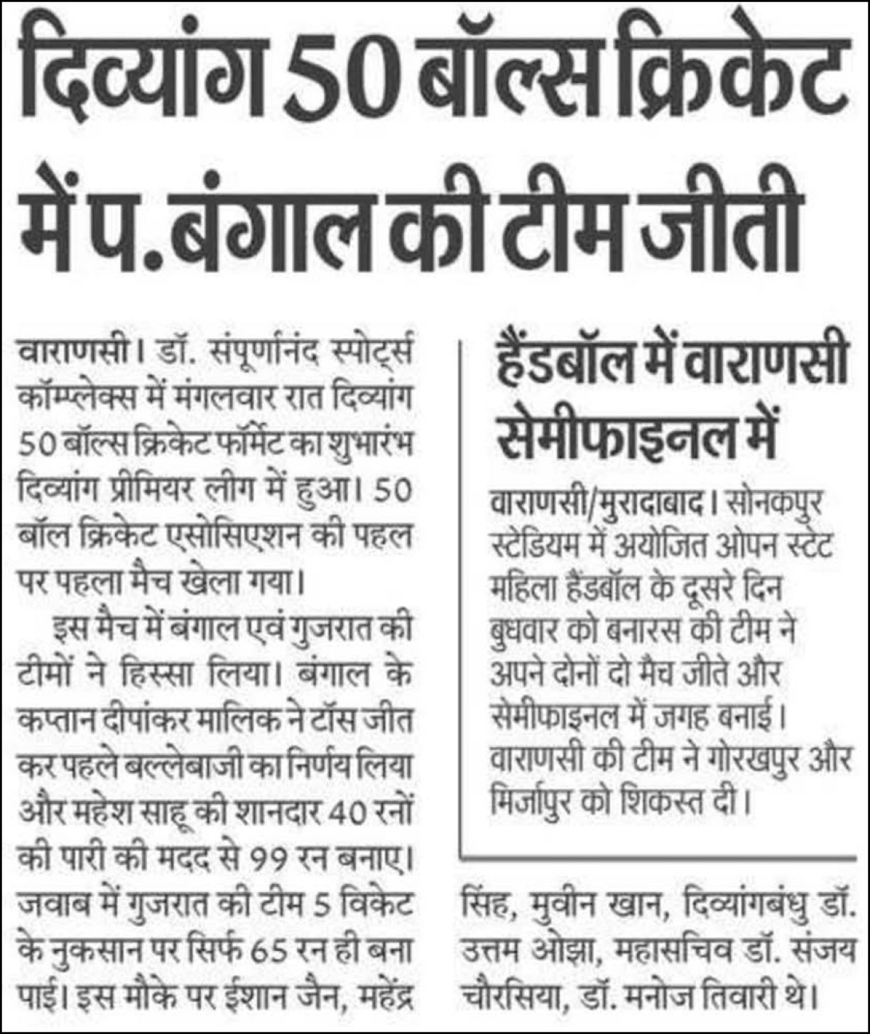 Organized by: DPL – Divyang Premier League & 50-Balls Cricket Federation of India