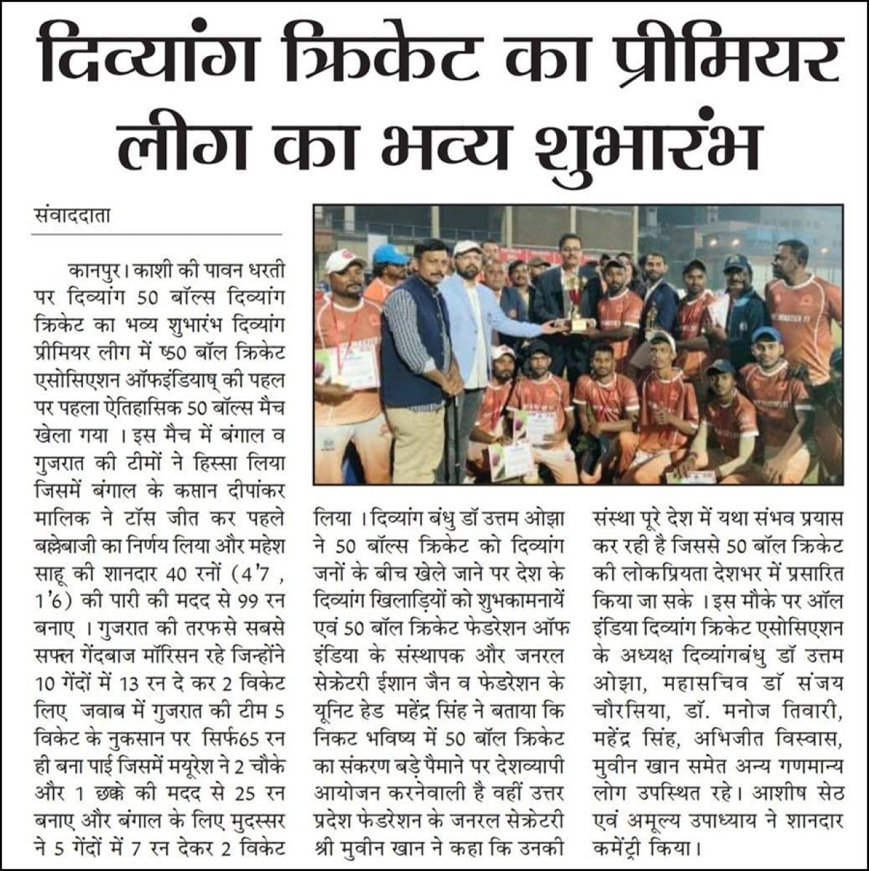 Results of the 50-Ball Cricket in the Divyang Premier League 2025