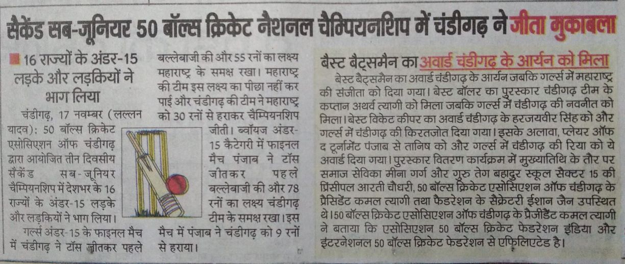 Organized by: 50-Balls Cricket Association of Punjab. Mohali, Punjab